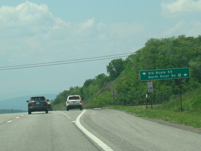 There is an at-grade intersection at Old Route 55 and North River Road (CR 1).