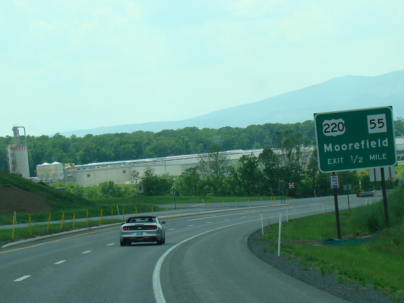 Corridor H crosses Fish Pond Road (CR 220/8) a second time. There is also an at-grade intersection at Walnut Bottom Road (CR 10/5).