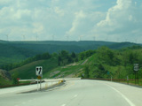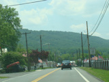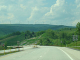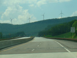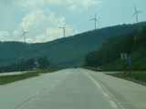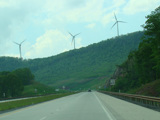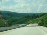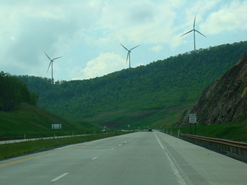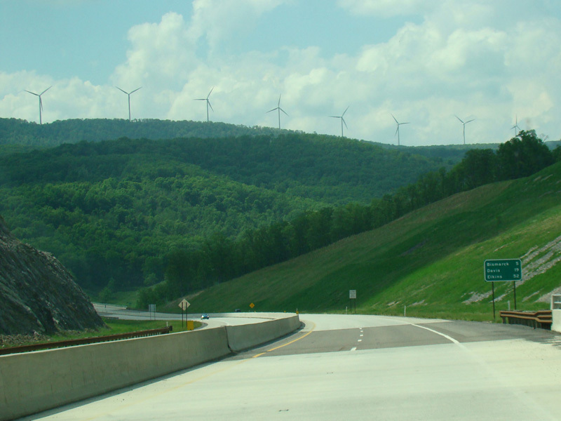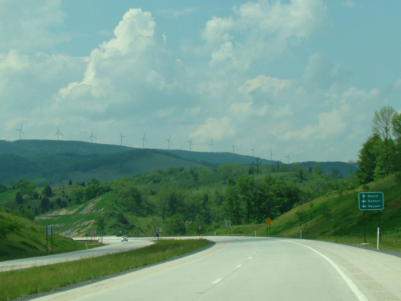 The Mount Storm Wind Farm becomes visible in the distance. Turn left for Laurel Dale Road (WV 93).