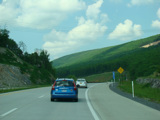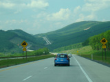 Welcome to Grant County! The highway slopes down at a fairly steep grade. The scenery along this stretch is amazing.