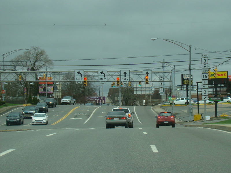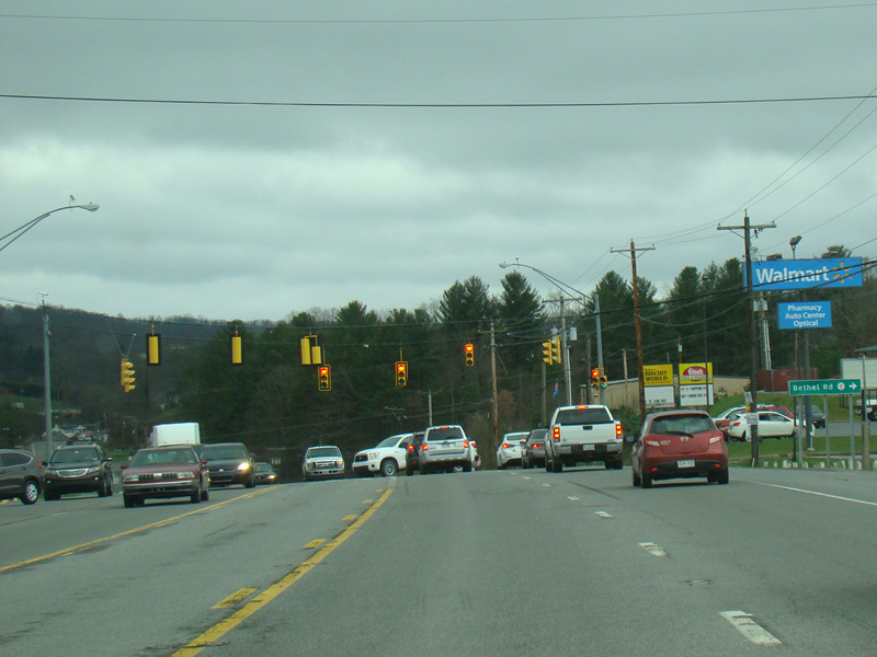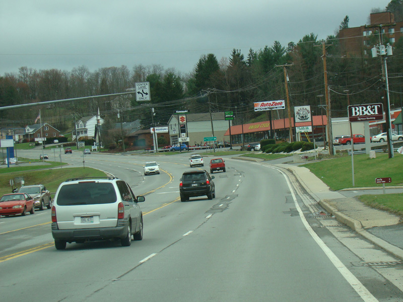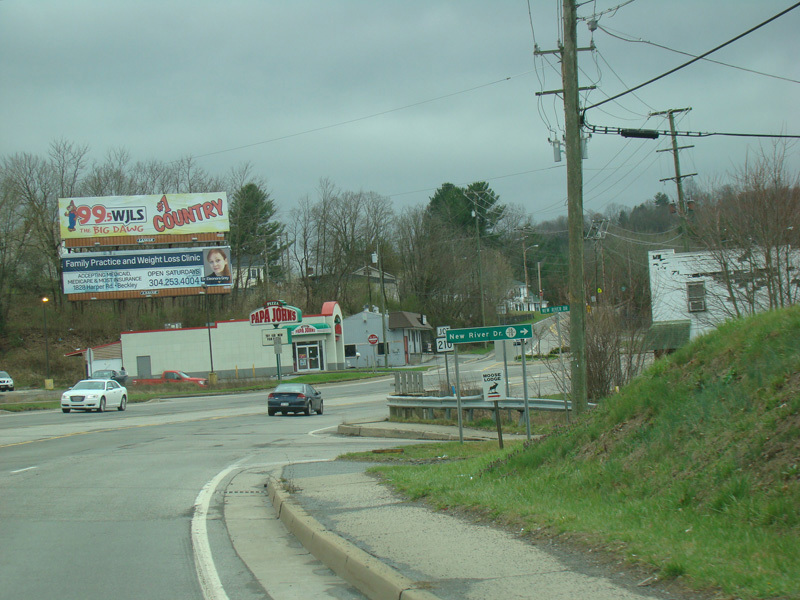 Robert C. Byrd Drive widens to four lanes again. There is a traffic light at Neville Street (WV 3). Turn left to go east or right to go west.