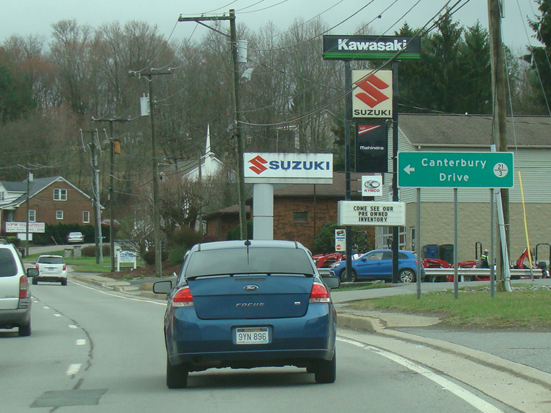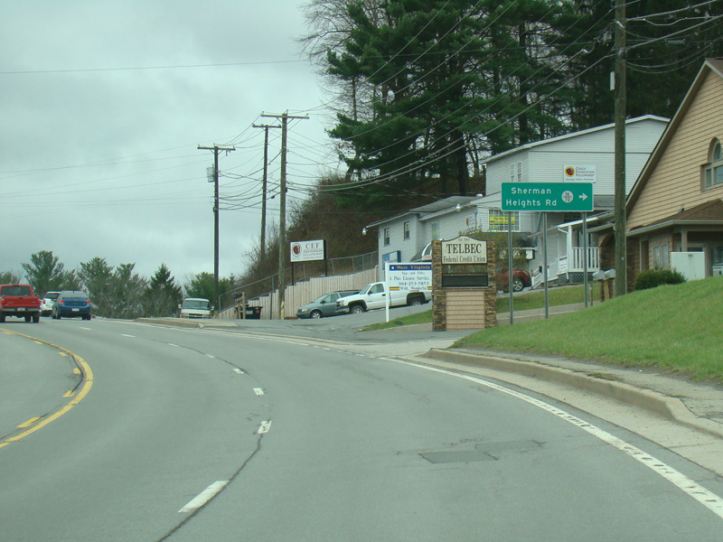 Robert C. Byrd Drive continues south as a four-lane undivided road. Canterbury Drive (CR 21/3) begins on the left. Sherman Heights Road (CR 16/70) begins on the right.