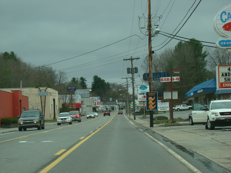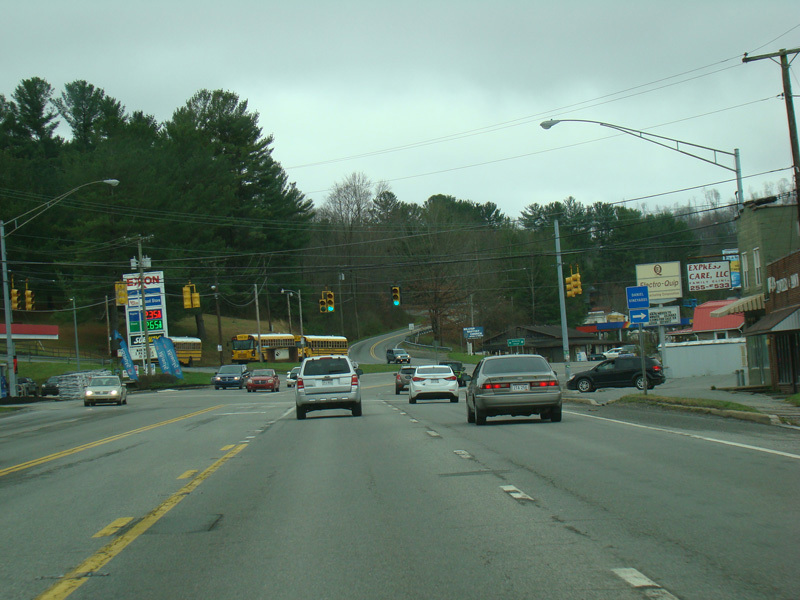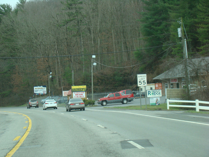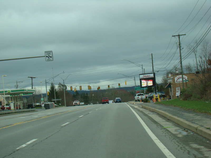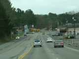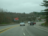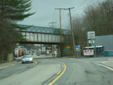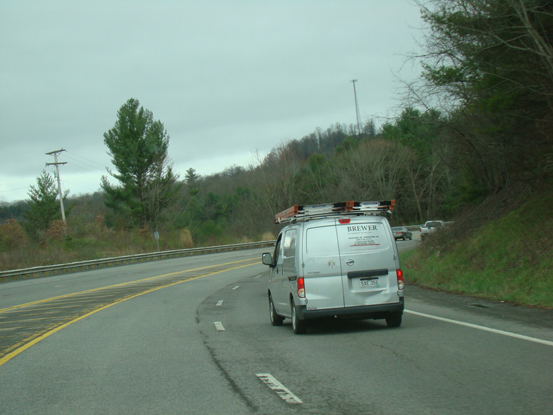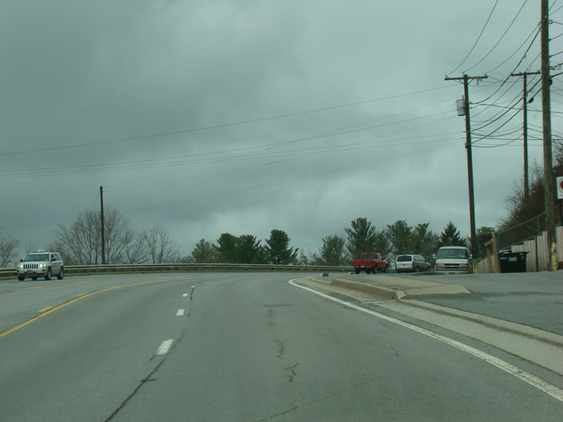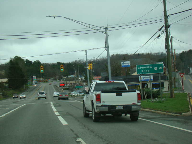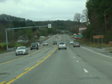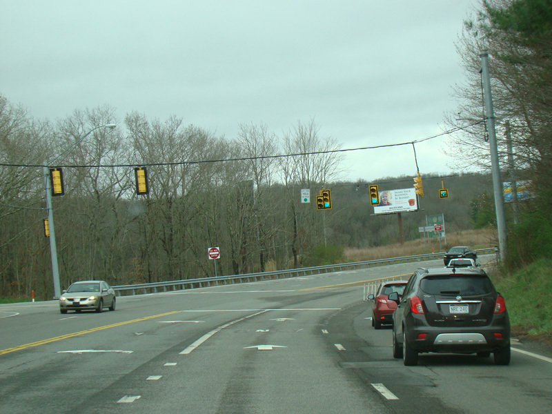The roadway splits. Bear right to stay on Robert C. Byrd Drive toward Lester Highway (WV 54). The Coalfields Expressway (WV 121) begins straight ahead. There is currently no signage for it, either by name or by number, because it currently ends a few miles from here.