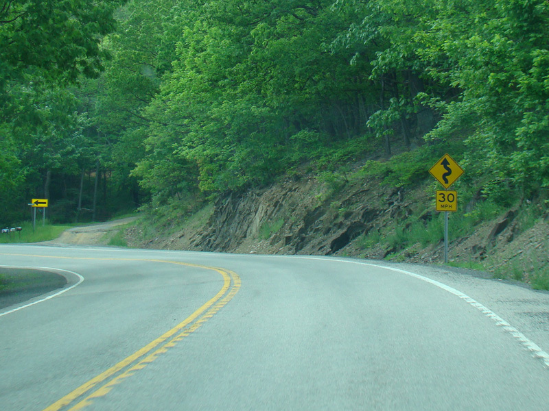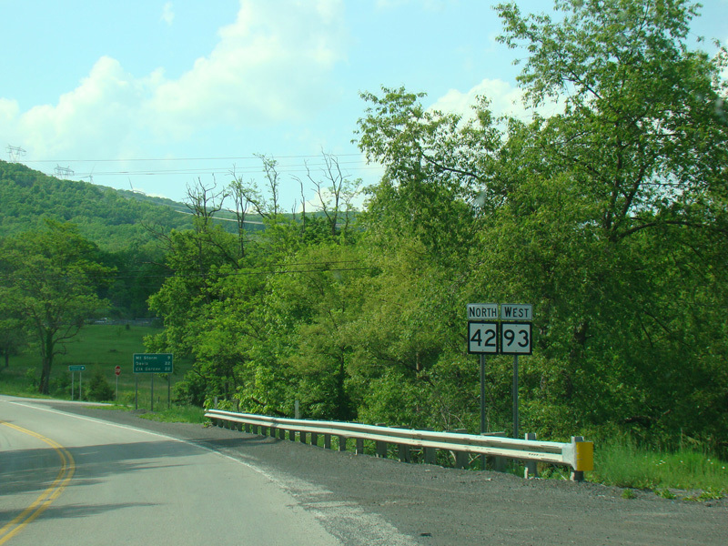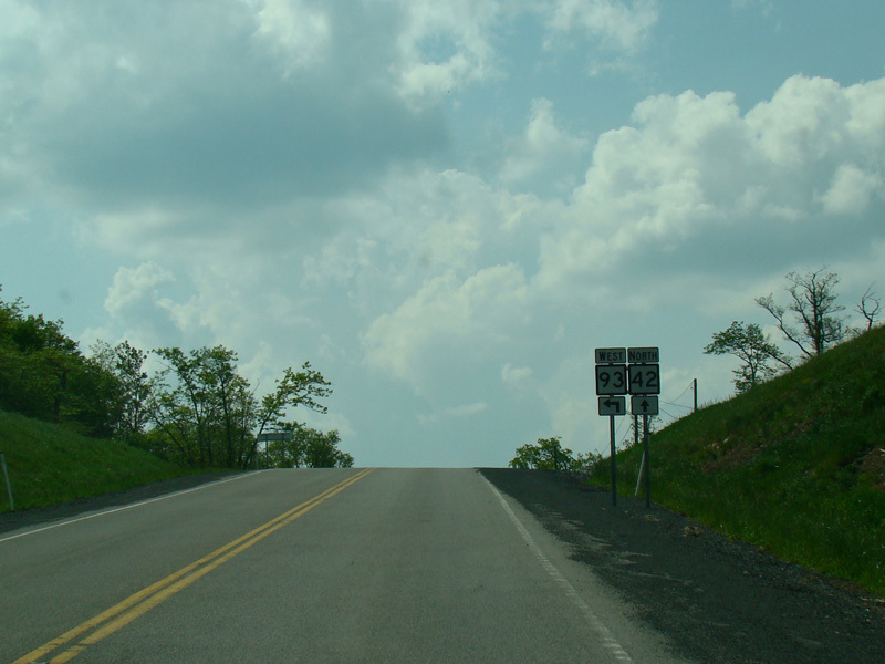 WV 42 is multiplexed with WV 93 as Union Highway, a two-lane undivided road. It works its way up the mountain, going around numerous switchbacks.