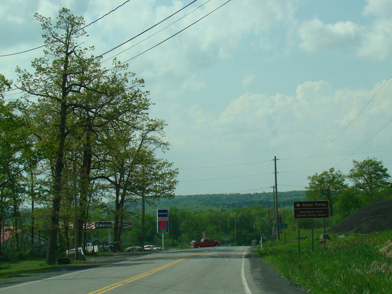 The two routes split here. Turn left onto Power Station Highway to stay on WV 93 and for access to Corridor H (US 48). Continue straight ahead on Union Highway to stay on WV 42.