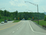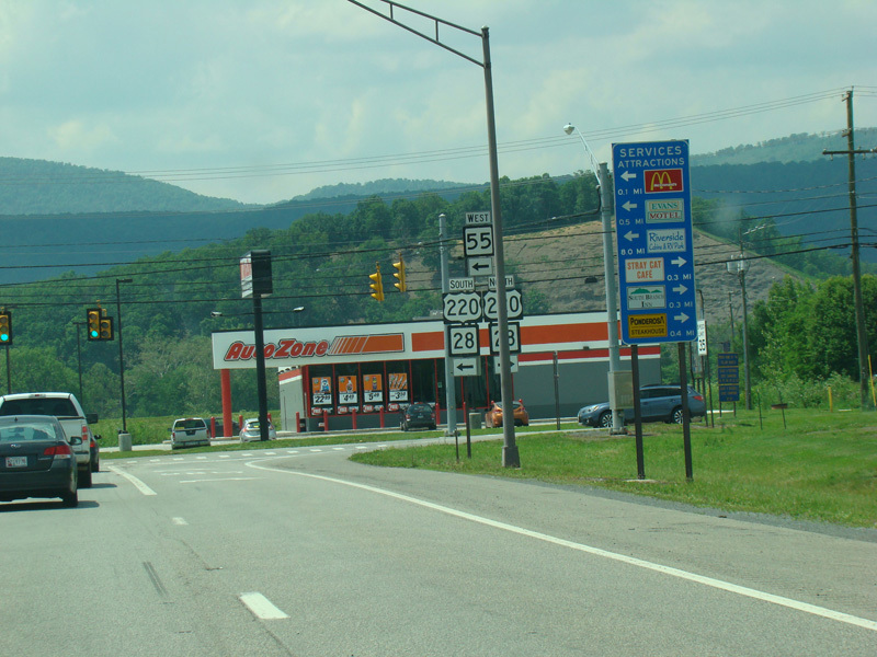 The short section of WV 55 in Moorefield is a four-lane divided road. It runs south and then curves to the west before ending at a traffic light at US 220/WV 28. Turn right to go north. Turn left to go south and to stay on WV 55.
