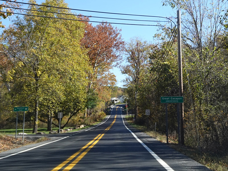 The speed limit goes up to 55 MPH. Capacon Road continues east toward Berkeley Springs.