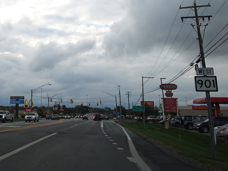 WV 901 begins at Williamsport Pike (US 11) and runs west as a four-lane undivided road.