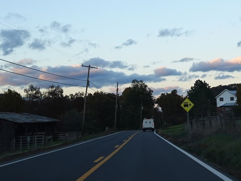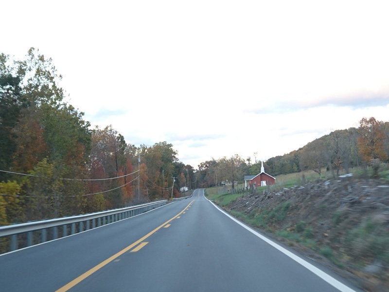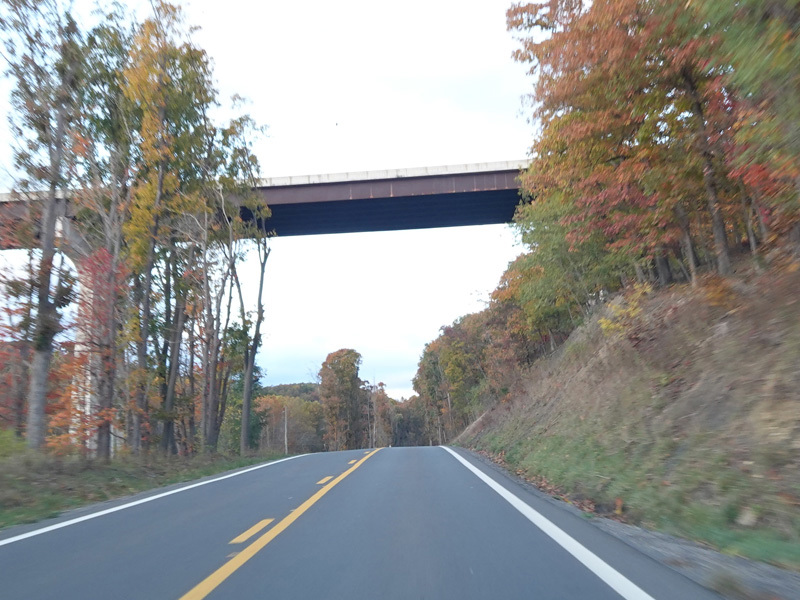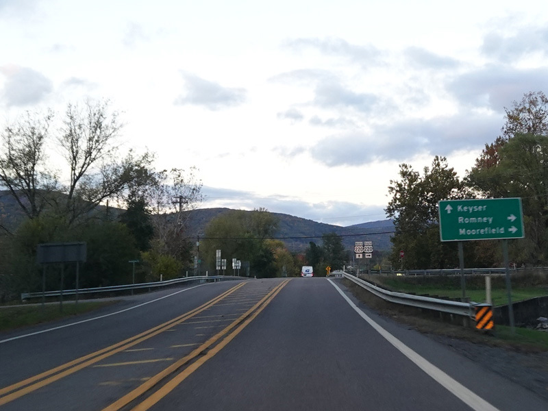 Skipping a few miles again, Laurel Dale Road runs north as a two-lane undivided road. Corridor H (US 48) passes over on a high overpass.